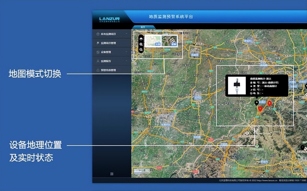 地面沉降又称为地面下沉或地陷,是在自然和人为因素作用下,由于地壳表层土体压缩而导致区域性地面标高降低的一种环境地质现象,是一种不可补偿的永久性环境和资源损失。 地面沉降具有生成缓慢、持续时间长、影响范围广、成因机制复杂和防治难度大等特点,是一种对资源利用、环境保护、经济发展、城市建设和人民生活构成威胁的地质灾害。 地面沉降灾害监测网地面沉降监测网适用于由采空塌陷、地下水开采引起的地面沉降。 通过部署GNSS形变监测设备,可实时获取监测点的水平位移与沉降量。综合塌陷地区InSAR数据经预处理后生成的高程数据、机载雷达数据经预处理生成的高程数据、自动化监测数据、人工测绘数据、GNSS自动化监测等多维度数据,对地面沉降发育程度进行分析。 监测网可根据近年平均塌陷速率、累计沉降量的任意一个条件,按强发育、中等发育、弱发育统计分析不同发育地面沉降的基础数据、百分比、范围分布等变化情况;同时依据采煤塌陷地沉降可能导致的人员、财产损失,按照危险程度的大、中、小划分标准,在自然资源一张图上进行标注,提高采空区塌陷预警能力,为综合治理塌陷地提供科学依据。 一体化监测站地面沉降监测网由一体化GNSS监测站、一体化静力水准仪监测站组成。 01 一体化GNSS监测站 实时毫米级监测 高精度北斗定位芯片,可以提供高质量卫星观测数据,实时获取毫米级的位置信息,进一步预测形变结果,为安全监管单位提供可靠数据。 全系统全频主流卫星信号接收 兼容北斗/伽利略/格洛纳斯/GPS/SBAS等。 多样化数据传输,个性化云端服务 支持4G全网通/IFI通讯/以太网接口;可选择NMEA-0183、CMR(GPS)、RTCM2(3).XMSM7等多种数据格式,数据完整调用轻松省心。 02 一体化静力水准仪监测站 XYZ三轴加速 内置高精度倾斜监测模块,辅助输出XYZ三轴角度及加速度。 智能滤波算法,监测数据更精确 采用24Z-A型ADC模数转换与低噪声、低温漂、精密串联电压基准芯片,采集数据高精度.静压差分、卡尔曼滤波,滤除环境噪声粗差,提高监测精度。 自带温度补偿 采用进口高精度压力芯体,自带温度补偿,长期运行稳定可靠。 标准化协议、标准化接头、低适配成本 采用RS485接口,标准Modbus协议输出,12V电压供电,具备过压、反接保护功能。 CNC一体合金机身,不锈钢防水快接插头,IP67防水级别,双向串联快接 配备专用保护盒,不用打开即可观察 配套监测软件 可视化云端管理平台全新升级的物联网平台,可以轻松管理所有设备,做到提前预警、设备状态、远程关机、远程设置等功能,让物联监测不再复杂。 成果展示